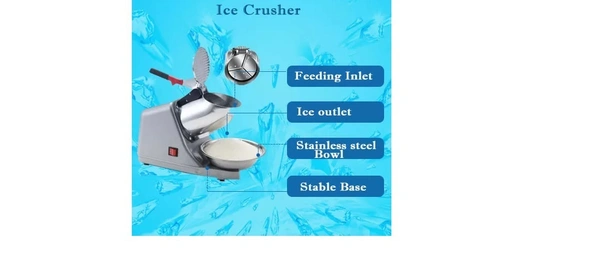This electric ice crusher is best for Ice smashing Ice crusher for chuski and Gola and for use in cafe and Restaurants. Also using in mocktails, cocktails and for making slushies and frozen drinks. It operates with a power rating of 250 watts and has the capability to produce up to 70 kilograms of crushed ice per hour.โฃ