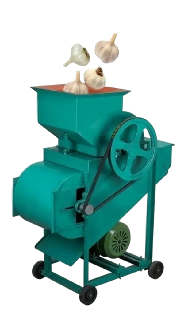 garlic/peanut shelling machine is designed to efficiently remove the outer shells of peanuts and garlic bulbs, allowing for the extraction of the edible parts without damaging them.