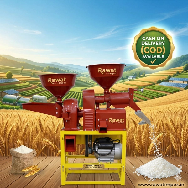 The Rawat Mini Rice cum Flour Mill is a versatile, space-saving solution designed for small-scale milling operations. Powered by a robust 3 HP single-phase motor, this machine efficiently handles both paddy processing (up to 200 kg/hr) and flour grinding (up to 60 kg/hr), making it perfect for home-based businesses, small farms, and rural enterprises.